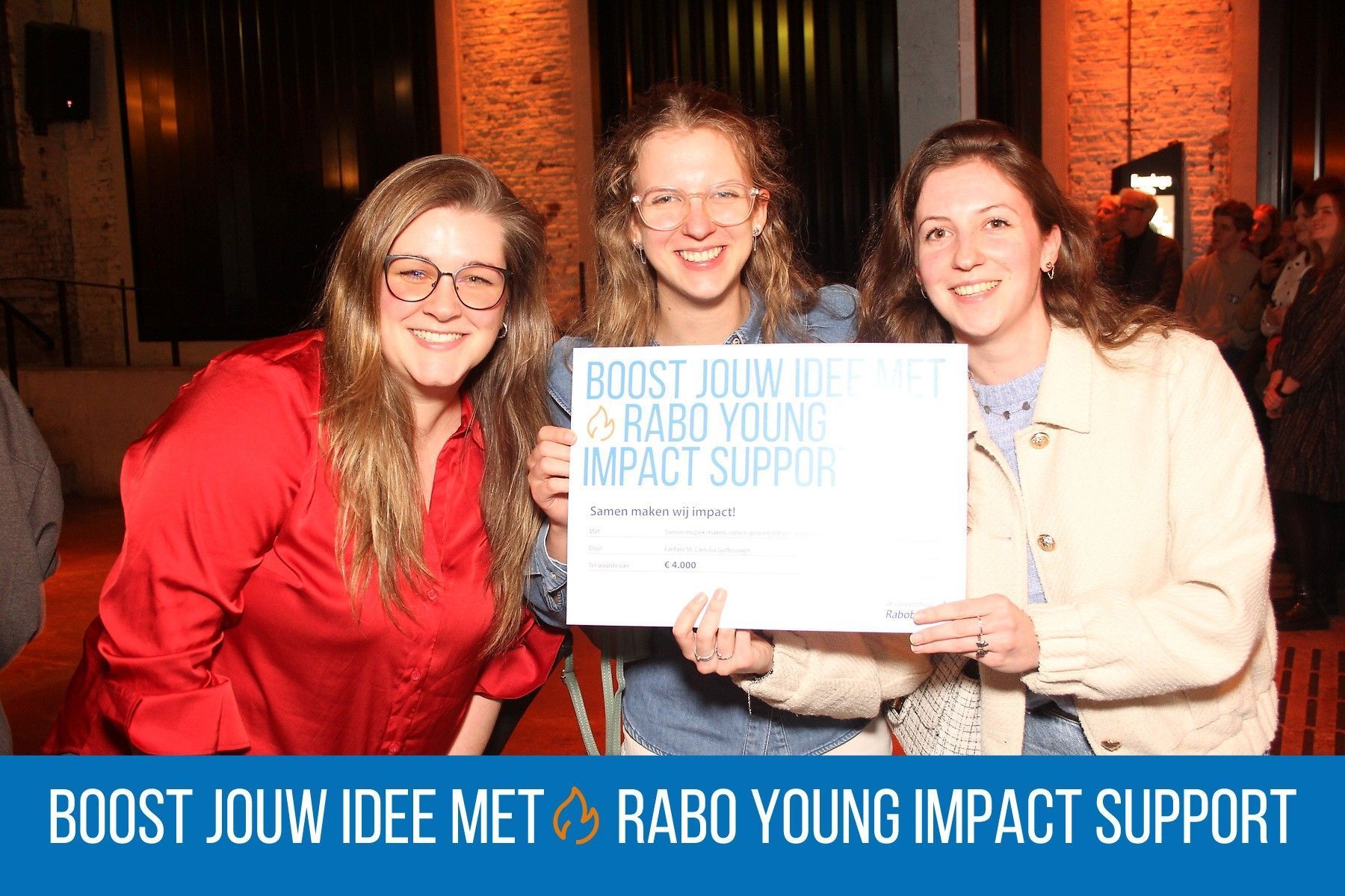 Rabo Young Impact Support heeft geld beschikbaar gesteld voor jongereninitiatieven binnen verenigingen die een financiële bijdrage ontvangen om hun idee tot uitvoering te brengen. Het gaat om projecten voor en door jongeren die bijdragen aan groei, verbinding en ontwikkeling van jongeren.